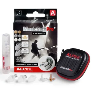Protectores Auditivos Alpine MusicSafe Pro, Transparente, Con Estuche, Cordón, Spray de Limpieza