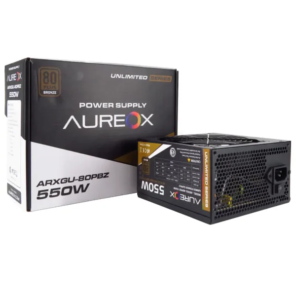 La fuente de alimentación Aureox ARXGU-80PBZ-550W de la serie Unlimited ofrece un rendimiento y un valor increíble. La certificación 80 Plus le permite soportar la alta eficiencia requerida por lo que sigue siendo popular para las construcciones de computadoras.