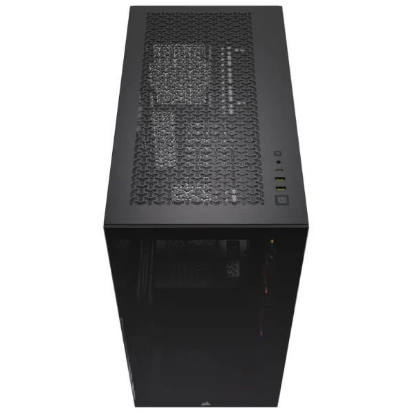 Mantén los componentes refrigerados gracias a los tres ventiladores RGB de 120 mm preinstalados, la compatibilidad con hasta diez ventiladores de 120 mm y el concentrador de sistema iCUE LINK (se vende por separado), que reduce el desorden de cables. Si prefieres refrigeración líquida, puedes instalar un radiador de 360 mm o 280 mm en la parte frontal, un radiador de 360 mm en la parte superior y un radiador de 120 mm en la parte trasera. Filtros antipolvo en la parte inferior. La parte superior y los laterales del chasis ayudan a mantener la limpieza de tu equipo. Con un marco de acero para mayor durabilidad, los paneles frontal y laterales de vidrio templado muestran los componentes y la iluminación a la perfección. El panel de E/S superior cuenta con dos puertos USB-A 3.2 Gen 1, un puerto USB-C 3.2 Gen 2 y un conector de audio combinado de 3,5 mm.