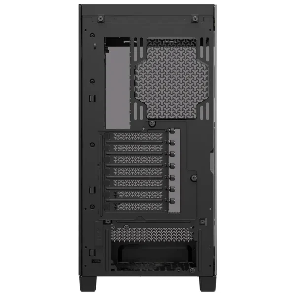 Si planeas un montaje robusto, no te preocupes, esta caja incluye siete ranuras de expansión (tres si lo montas verticalmente) y cuenta con una bahía para disco duro de 3,5″ y dos bahías para unidades SSD de 2,5″ como opciones de almacenamiento. Tres ventiladores RS120-R ARGB vienen preinstalados, pero la caja tiene espacio para un total de 10 ventiladores de 120 mm para una refrigeración potente si es necesario.