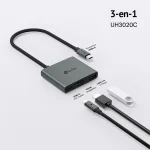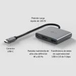 - Hub 3 en 1 USC-C: UH3020C convierte un único puerto USB-C en 6 puertos con un HDMI 4K@60Hz , 100W Power Delivery y un puerto USB-A.