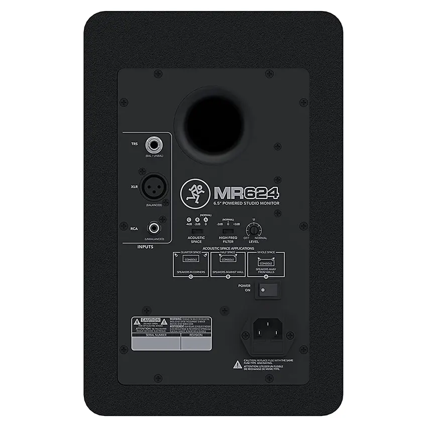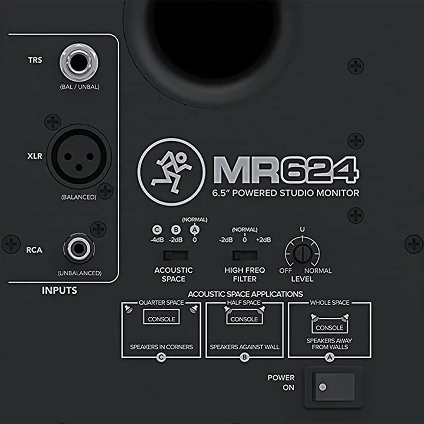 El MR624 se ha diseñado pensando en la flexibilidad, con entradas de monitorización XLR, TRS y RCA. El altavoz se ha alojado en una caja de madera que ha sido tratada con material de absorción acústica para obtener una respuesta más ajustada. Además, se puede añadir el subwoofer de estudio MRS10 para obtener un extremo inferior más potente y extendido.