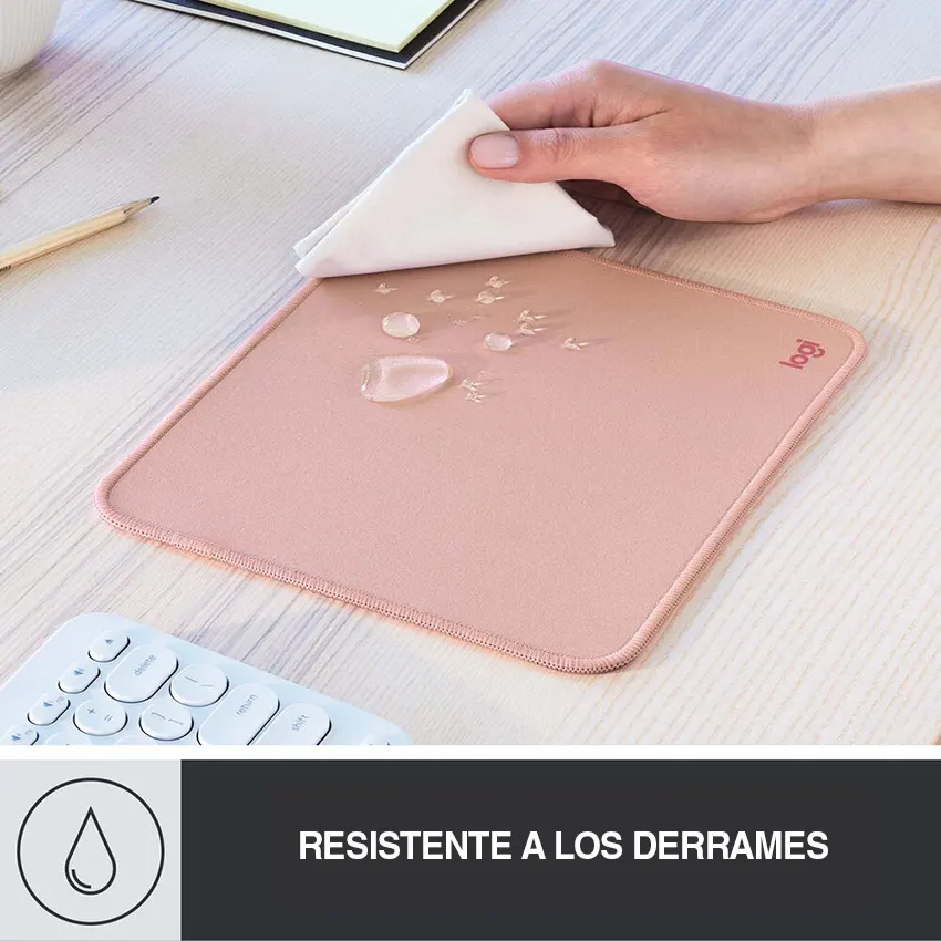 La alfombrilla de mouse Logitech posee un recubrimiento a prueba de salpicaduras que resiste posibles percances, permitiendo limpiar fácilmente líquidos derramados.