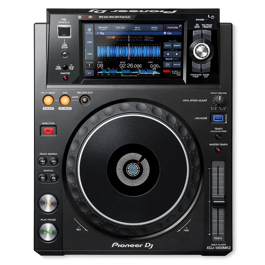 Basado en su predecesor, el XDJ-1000MK2 mejora la usabilidad con la navegación a través de la pista mejorada y soporte para archivos de audio de alta resolución FLAC y ALAC. Hereda el gran jog wheel y la pantalla táctil a todo color de 7 pulgadas del CDJ-2000NXS2, también características como 8 Hot Cues y Quantize.