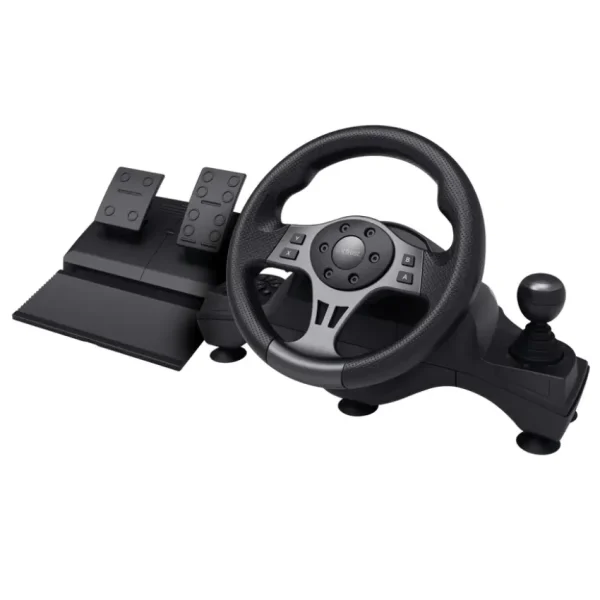 Con un rango de rotación de hasta 270° y un ángulo virtual de 900° (2,5 giros de volante), este volante es perfecto para cualquier cosa, desde juegos de carreras hasta simuladores de camiones, tractores y autobuses. También incluye respuesta de vibración para que te metas de lleno en las carreras.
